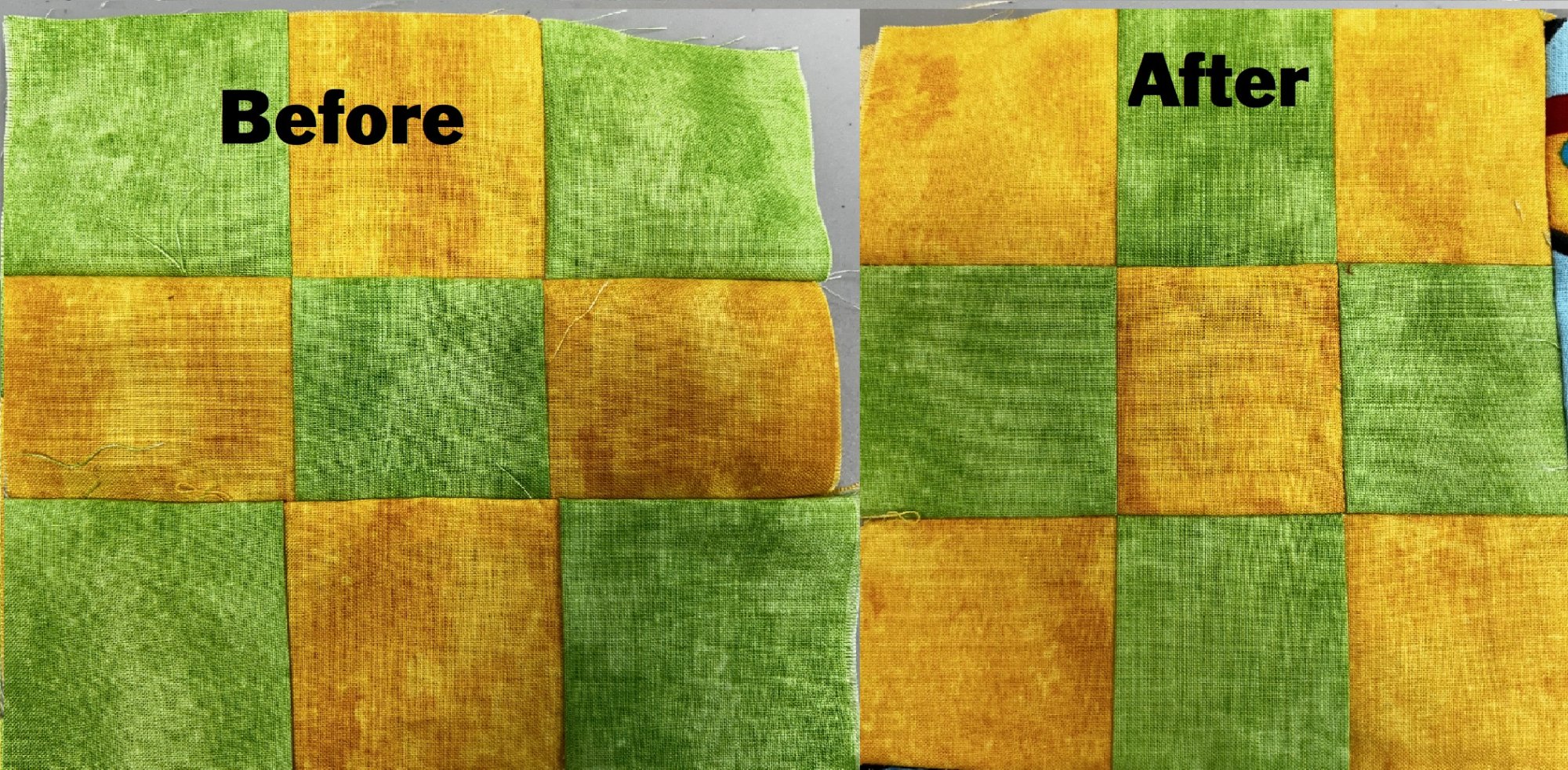 Learn how to hold your ruler right, good habits when using a rotary cutter, when to press and which direction to press in! Learn how to nest your seams, and have your blocks come out perfect!